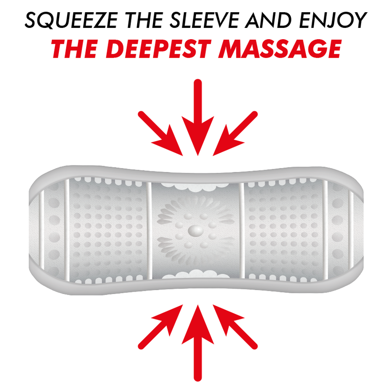 - Pour une plus grande sensation, pressez le manchon masturbateur