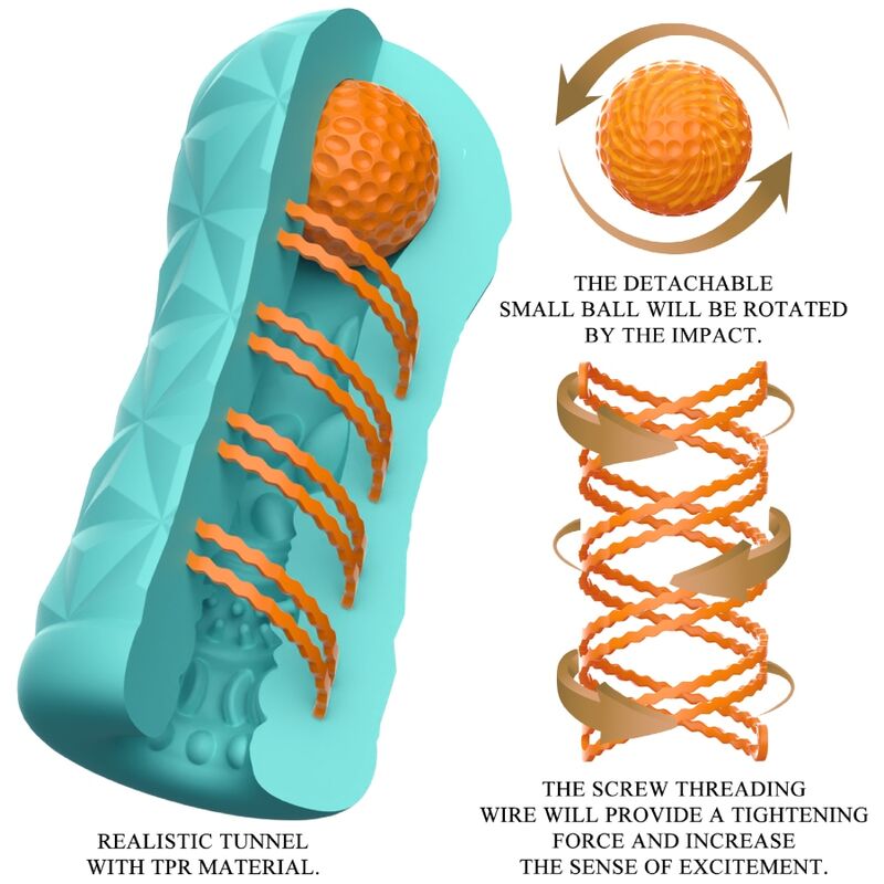 Petit outil pour un plaisir de masturbation gigantesque ! Ce masturbateur transparent et réutilisable possède une spirale rotative et une boule de stimulation sur le côté, la spirale rotative fait tourner le masturbateur lors de la pénétration et la boule sur le dessus peut stimuler le bon endroit et vous procurer une nouvelle sensation. La gaine possède à l'intérieur une texture stimulante et excitante qui masse le pénis de manière intense et dynamique lors du travail manuel. Vous pouvez utiliser cet élégant masturbateur doux pour la peau encore et encore. Très simple d'utilisation et un pur plaisir !